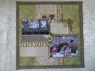 У меня какие-то творческие выходные выдались. За 3 дня, сделала 2 разворота. И если первый дался мне легко, то с этим я долго не могла справиться, переделывала три раза. Ну, не хотели фотки, подложка и бумажка дружить и все тут. Пока меня не посетила идея сделать подложку из льняной ткани и вот что получилось. Есть место для журналинга, тэг, использовала штампы, эмбосинг, кракелюр, глосси, восченый шнур, акварельные карандаши, братсы и люверсы, билетик (правда его еще поискать надо под веточкой)))).